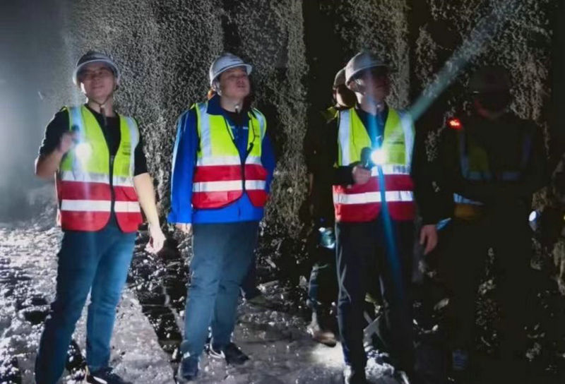 16標項目經(jīng)理阮超(右1)、黨支部書記韓祟生(右2)深入隧道掌子面檢查,解決安全質(zhì)量有關(guān)問題(杜曉言攝)