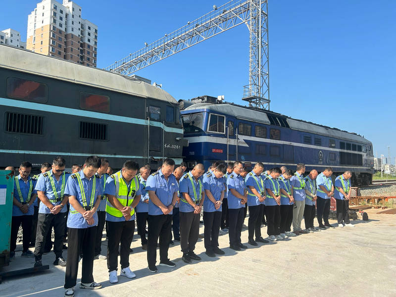 隨著防空警報(bào)的響起,全體員工立即停止手中的工作,原地肅立,低下頭,閉上眼睛,開始默哀。默哀期間,現(xiàn)場沒有任何聲響,只有警報(bào)的余音在每個人心中回蕩。在這靜默的三分鐘里,時間仿佛凝固,不僅是對先烈的哀思和對那段歷史的沉痛記憶,更是對那段苦難歲月的紀(jì)念,也是對和平的珍視和對未來的期許。最后,全體員工共同唱響了國歌,歌聲激昂而有力,表達(dá)了對偉大祖國的深深熱愛,也彰顯了新時代鐵路人昂揚(yáng)向上的精神風(fēng)貌。隨著國歌的結(jié)束,整個儀式也落下帷幕。
