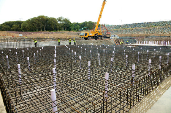 招賢樞紐項目去年9月正式進入第一道圍堰土石方施工,經(jīng)過3個多月緊張施工,完成了鄰江400多米的圍堰填筑任務(wù),按照施工組織設(shè)計進入導(dǎo)流墻、泄洪閘(含閘墩)施工階段。全長166米的導(dǎo)流墻于今年4月17日完成,泄洪閘17個閘墩其中4個正在進行上部鋼筋籠和澆注混凝土施工,1個在進行首節(jié)施工。該區(qū)域今年汛期3個月,扒掉圍堰停工給洪水讓路,最大洪峰過境時水位增高約8米,汛期結(jié)束一周后,常山江河道洪水消退到最低位時,該項目部啟用幾臺大功率水泵將幾萬立方洪水排完才開始消力池施工。當(dāng)基坑挖至巖石層具備硬化條件時,布網(wǎng)、澆注混凝土。每一道工序的質(zhì)量都有嚴格標準,鋼筋布局縱向、橫向間隔距離、綁扎質(zhì)量、墊石、澆注等,要經(jīng)過項目部技術(shù)人員認真檢查確認,再請監(jiān)理和業(yè)主技術(shù)人員檢查簽字認可。
