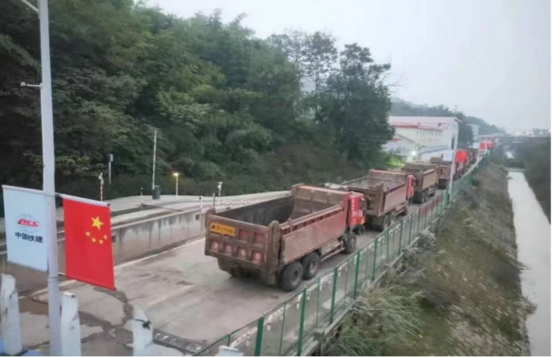 中梁山隧道進(jìn)口便道運(yùn)輸棄渣的車隊(duì)(杜曉言攝)