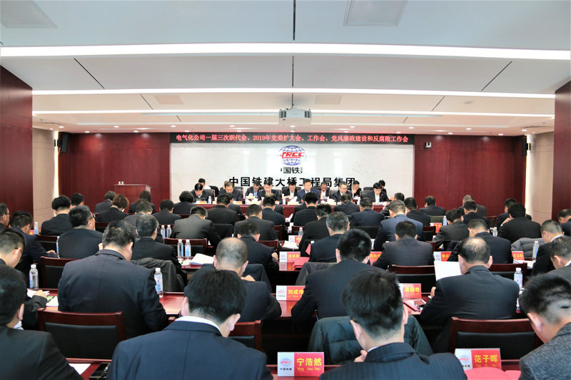 圖一、中鐵建大橋局電氣化公司一屆三次職代會、2019年黨委擴大會、工作會、黨風廉政建設和反腐敗工作會會場