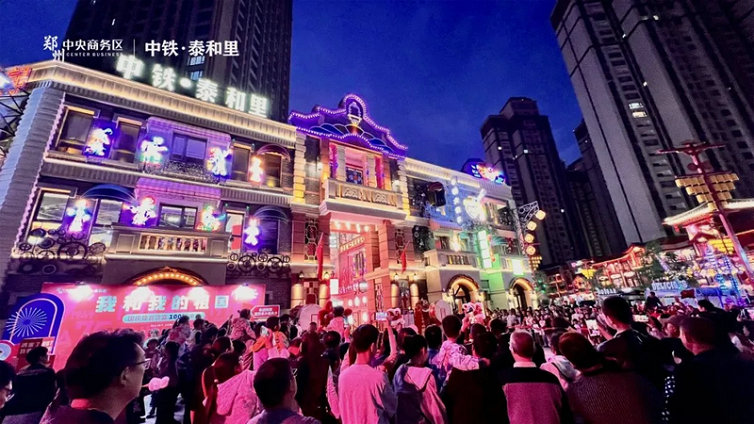 街區(qū)現(xiàn)場市民接踵而至,數(shù)千面五星紅旗隨風飄揚,呈現(xiàn)出一片欣欣向榮、國泰民安的盛世景象。印象1923和唐宋夢華街區(qū)同時開演大型沉浸式演藝,包含《人生如戲》、《泰和里盛會》、《花月宴》、《民間儺戲》、《花魁巡游快閃》等經(jīng)典大劇以及國慶快閃、紅歌大合唱、國潮變臉、國潮戲曲、詩詞串燒等國慶限定版節(jié)目,成功吸引了廣大市民的目光。街區(qū)內(nèi)紅歌大合唱將現(xiàn)場氛圍推向了高潮,游客們齊聲高唱,用嘹亮的歌聲共同表達對祖國的深切熱愛與美好祝愿。中鐵·泰和里主題街區(qū)通過深度挖掘中原歷史文化,以其獨特的沉浸式體驗,在文商旅項目中脫穎而出。不僅為鄭州的夜經(jīng)濟增添了新活力,還成為了展示城市文化、提升消費體驗的重要窗口。未來,中鐵·泰和里將繼續(xù)為鄭州市國際消費中心的建設(shè)貢獻力量,為更多游客帶來與眾不同的文化體驗。