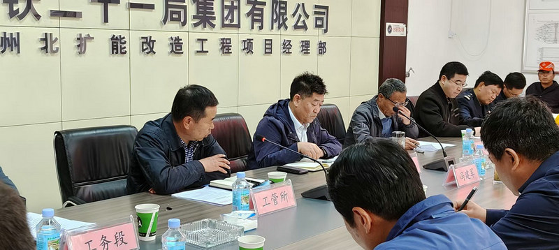 唐文國(guó)深入一線(xiàn),實(shí)地檢查了項(xiàng)目上下編組場(chǎng)及下行駝峰風(fēng)雨棚現(xiàn)場(chǎng)施工情況。隨后,在項(xiàng)目組織召開(kāi)了現(xiàn)場(chǎng)推進(jìn)會(huì)。
