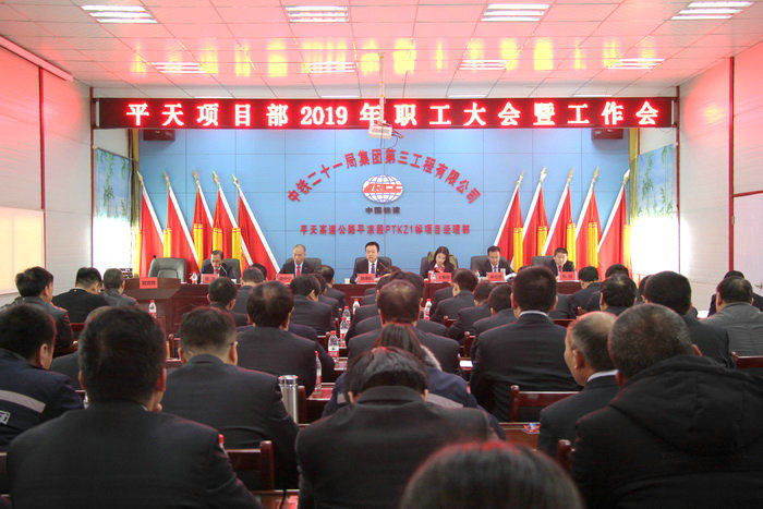 2月21日,中鐵二十一局三公司平天高速PTKZ1標(biāo)項目部召開了2019年職工大會暨工作會。項目部全體職工、勞務(wù)工、協(xié)作隊伍、供應(yīng)商等80余人參會。會議由項目副經(jīng)理張永主持。
