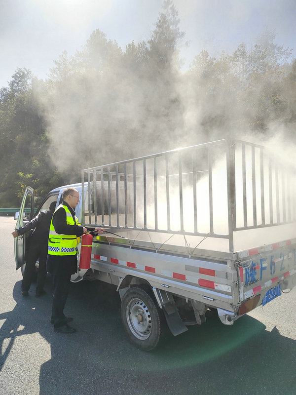 當(dāng)日13時(shí)53分,一輛平板式貨車行駛至廣平高速樂安收費(fèi)站出口,收費(fèi)員吳金鳳發(fā)現(xiàn)車箱有濃煙冒出,立即告知司機(jī)火情,引導(dǎo)著火車輛駛?cè)刖o急避險(xiǎn)位置,并及時(shí)報(bào)告監(jiān)控中心和值班站管;另一方向的入口收費(fèi)員王陽澤曦看到后,立即攜帶手持式滅火器跑到著火車輛處第一時(shí)間進(jìn)行撲救;聽到火情通報(bào)后,收費(fèi)站其余人員按照預(yù)案趕赴現(xiàn)場參加處置。經(jīng)過約十分鐘全力撲救,火情被徹底撲滅,無人員受傷,車上貨物大部得到挽回。