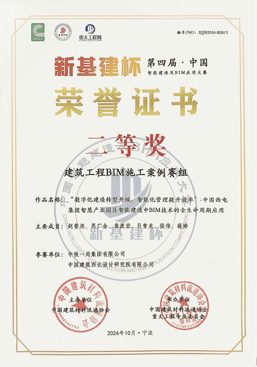 (西安訊)11月4日,中鐵一局建安公司西電智慧產(chǎn)業(yè)園(東區(qū))五標(biāo)段項(xiàng)目“數(shù)字化建造轉(zhuǎn)型升級 智能化管理提升效率”BIM技術(shù)應(yīng)用成果捷報頻傳,先后斬獲國內(nèi)四項(xiàng)大獎,其中包括三項(xiàng)國家級獎項(xiàng)新基建杯二等獎、中施企協(xié)三等獎、龍圖杯優(yōu)秀獎以及一項(xiàng)省部級獎項(xiàng)秦漢杯二等獎。同時授權(quán)實(shí)用新型專利一項(xiàng),申請實(shí)用新型專利一項(xiàng)、發(fā)表論文兩篇。