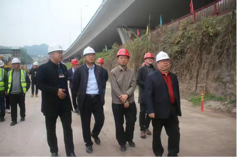 總承包部指揮長(zhǎng)李兵(右1)、黨工委書記王向平(右3)、17標(biāo)項(xiàng)目經(jīng)理顧賀云(左1)到現(xiàn)場(chǎng)安全檢查