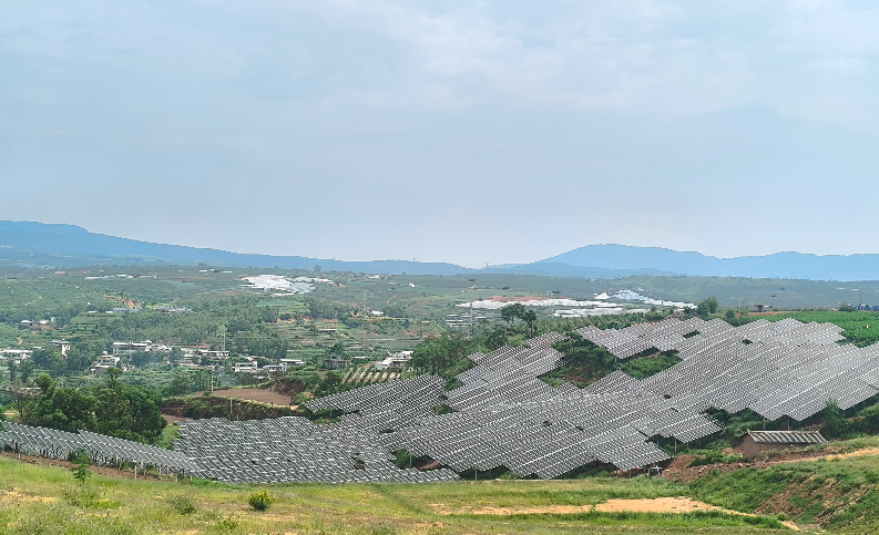 新疆兵團建工集團市政軌道交通集團華東分公司勐蓮50MW光伏電站組件安裝完成實景圖