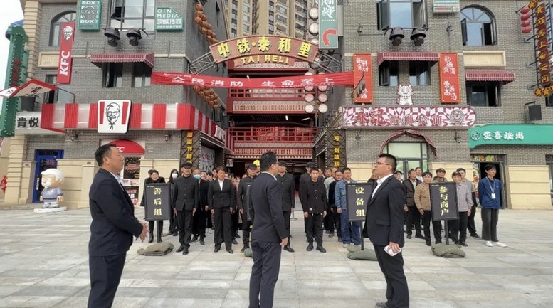 11 月 7 日,中鐵中產(chǎn)置業(yè)公司中鐵·泰和里商業(yè)街聯(lián)合商戶開(kāi)展消防安全演練活動(dòng)。