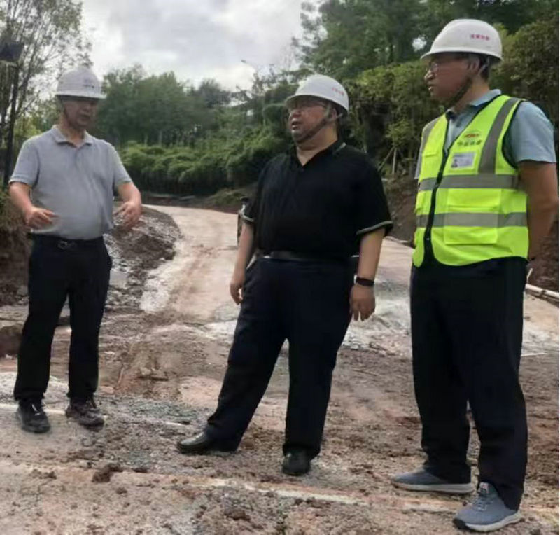 總承包部指揮長李兵(右2)、黨工委書記王向平(右1)、副指揮長陳華富(左1)在現(xiàn)場(chǎng)檢查督導(dǎo)