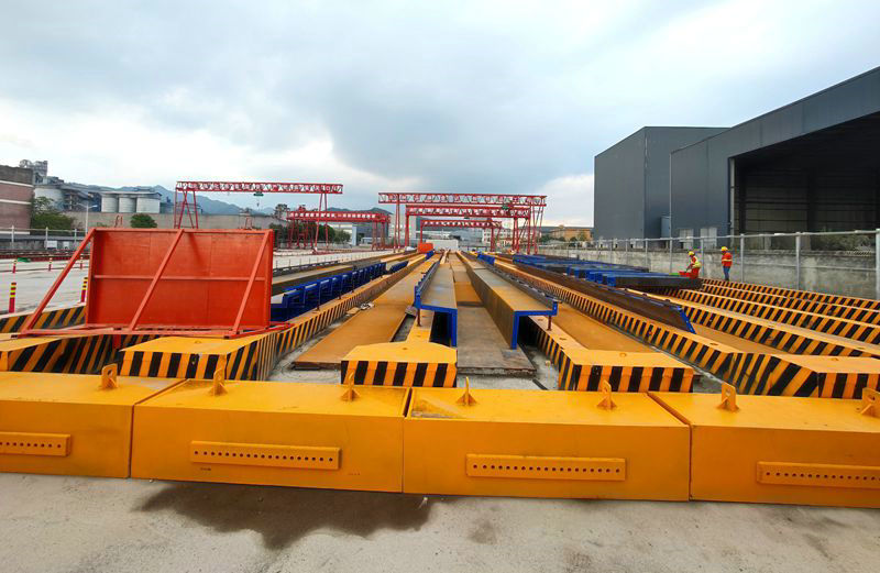 該梁場(chǎng)按國家有關(guān)設(shè)計(jì)標(biāo)準(zhǔn)設(shè)置防排水、電力、消防等設(shè)施。同時(shí)安裝智能張拉機(jī)、真空壓漿機(jī)各一套,80噸、70噸、10噸龍門吊各2臺(tái),定型鋼模板13套,噴淋養(yǎng)護(hù)系統(tǒng)2套,配電設(shè)備、視頻監(jiān)控設(shè)備各1套,以及柴油發(fā)電機(jī)等,制梁、吊裝、電力等各種設(shè)備應(yīng)有盡有。