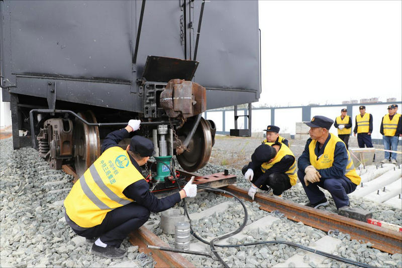 本次演練分為安全防護組、技術支持組、現(xiàn)場搶修組、后勤救護組。運輸分公司總工程師在演練開始前詳細講解了演練的注意事項和流程。下午15時,應急救援演練開始,參演人員迅速行動,按照預案要求各小組迅速展開救援工作。安全防護組第一時間拉開警戒帶,隨后對場地周圍障礙物進行清除,對事故現(xiàn)場兩端進行安全防護;后勤救援組迅速將應急救援物資運送到事故現(xiàn)場;技術支持組立即組織現(xiàn)場勘察并提出救援方案;現(xiàn)場搶修組使用起復設備準備將卸砟車輛復軌。參演人員各司其職、緊密配合,經(jīng)過一系列緊張而有序的操作后,成功將模擬脫線的車輛起復至正常位置。整個演練過程緊張而有序,充分展示了應急救援隊伍的的專業(yè)素養(yǎng)和應急處置能力。
