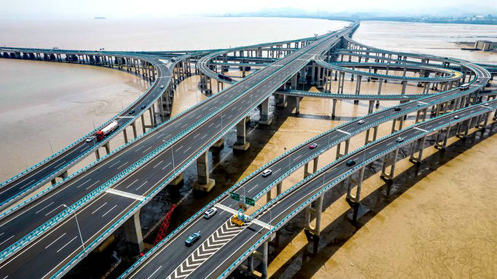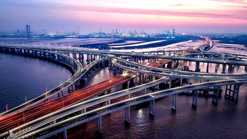 中鐵十五局承建的杭甬高速?gòu)?fù)線寧波一期S3合同段濱海高架、濱海互通全長(zhǎng)14.6公里,占海面積613.03畝,樁基1739根,承臺(tái)348座,橋墩812座,其中濱海互通是亞洲最大的海上互通,全長(zhǎng)9705米,由8條匝道、4座拼寬、1座主線橋組成,3條匝道上跨既有高速跨海金塘大橋,安全風(fēng)險(xiǎn)高。由于兩座橋地處寧波鎮(zhèn)海淺海水域,必須搭建一座海上鋼棧橋。為保證濱海高架、濱?;ネㄊ┕ろ樌M(jìn)行,從2019年8月份開(kāi)工以來(lái),該公司通過(guò)招標(biāo),選用幾家海上搭建棧橋經(jīng)驗(yàn)豐富的隊(duì)伍,采取對(duì)方出人、出設(shè)備、出材料、負(fù)責(zé)搭建和拆除、該公司出租金的方式,在海上搭建全長(zhǎng)14.6公里、寬9米、高6.5米、由鋼管、角鋼、貝雷架、鋼板等21萬(wàn)噸鋼材構(gòu)成的棧橋和作業(yè)平臺(tái)。為節(jié)省租賃費(fèi),從濱海高架開(kāi)始,每完成幾座橋墩,便馬上交業(yè)主、監(jiān)理單位檢查驗(yàn)收,待簽字確認(rèn),給棧橋施工單位下達(dá)拆除通知,不再支付費(fèi)用。濱海高架樁基、承臺(tái)和橋墩施工結(jié)束不久,棧橋也隨之拆除完畢。轉(zhuǎn)入濱?;ネㄊ┕ず螅鶕?jù)橋墩、架梁推進(jìn)情況,搭設(shè)的棧橋和平臺(tái)除滿足施工外,其余及時(shí)通知棧橋隊(duì)拆除,避免棧橋和平臺(tái)閑置,僅這一項(xiàng)節(jié)約不菲的租賃費(fèi)。海上棧橋和作業(yè)平臺(tái)助力濱海高架、濱海互通順利完成兩座大橋的樁基、承臺(tái)、橋墩、架梁和橋面施工任務(wù),為2023年12月8日順利交工、2024年1月19日正式通車運(yùn)營(yíng)發(fā)揮了作用。