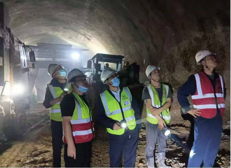 16標(biāo)項目黨支書記韓崇生(右1)組織黨員干部深入隧道掌子面排隱患(杜曉言攝)