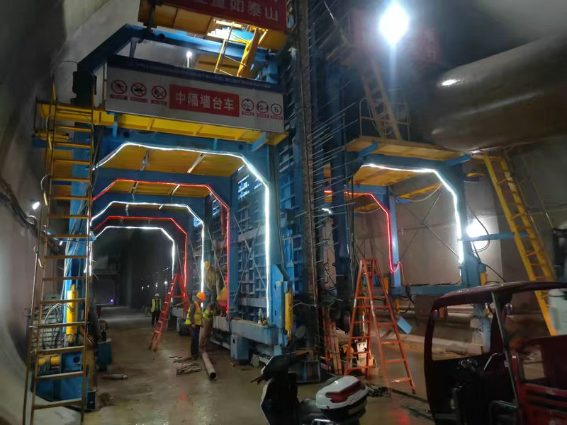中鐵建重慶軌道交通15號線二期總承包部16標(biāo)中梁山隧道單洞雙線首模中隔墻澆筑完成