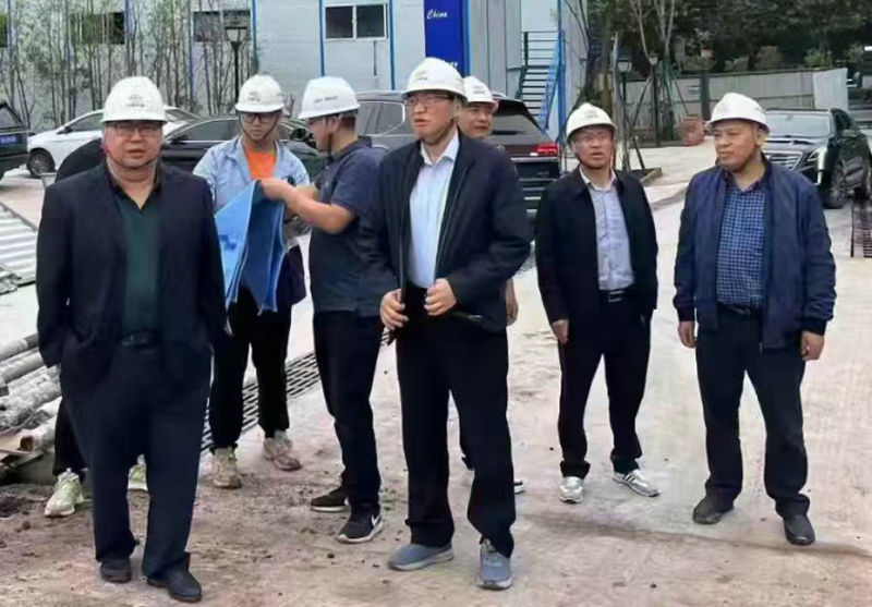 總承包部指揮長李兵(左1)、黨工委書記王向平(右3)經常帶領黨員干部到現場巡查,及時發(fā)現解決問題
