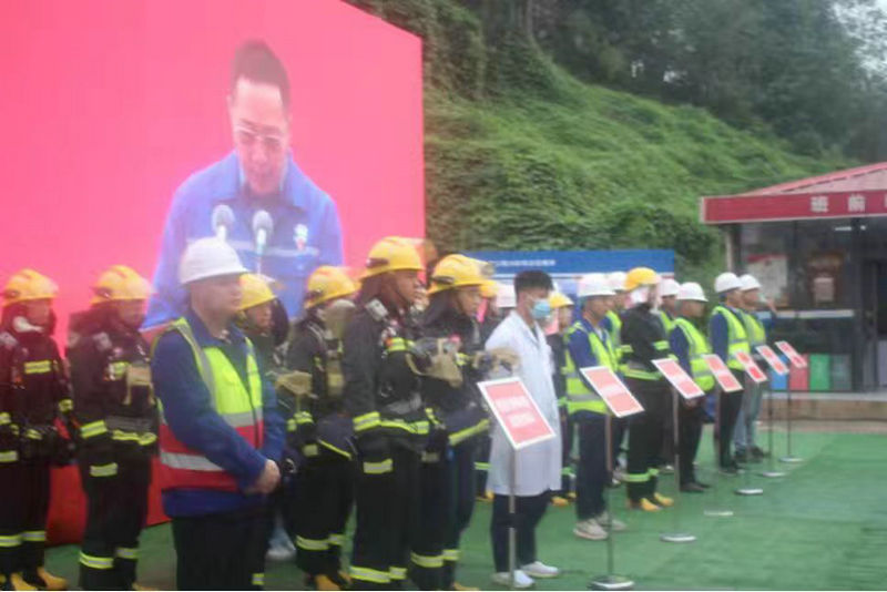 項目部施工的中梁山隧道進口有毒氣體演練現(xiàn)場