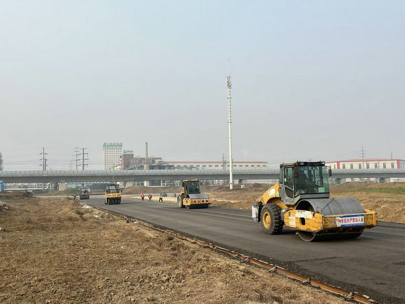 (圖說(shuō):2024年12月13日安徽固鎮(zhèn)EPC市政項(xiàng)目緯四東路水泥穩(wěn)定碎石下基層攤鋪碾壓施工 善忠俊攝)