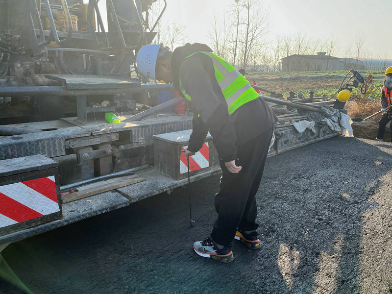 圖說:2024年12月20日安徽固鎮(zhèn)EPC市政項目緯四東路水泥穩(wěn)定碎石下基層攤鋪松鋪厚度檢測 善忠俊攝