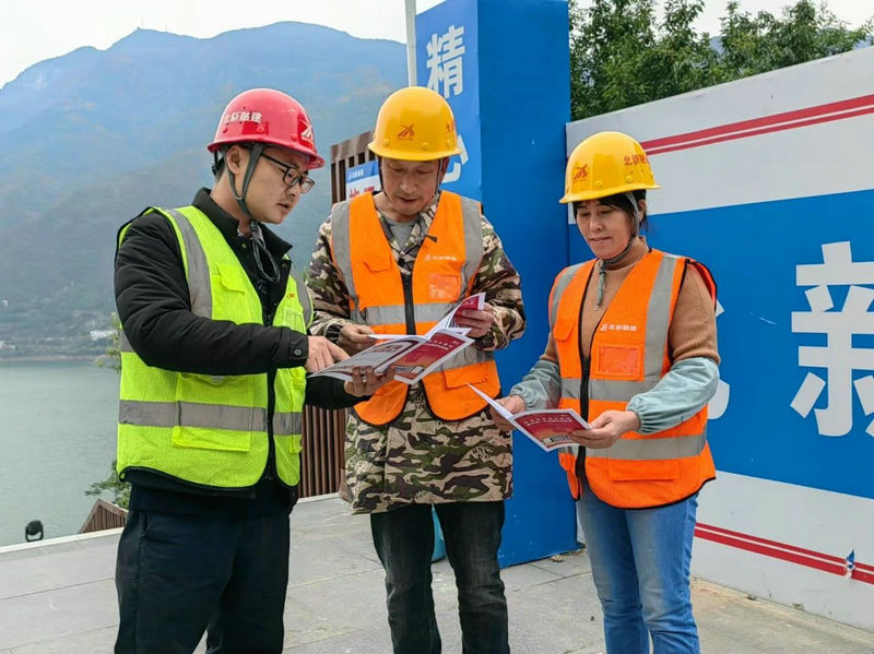 在項(xiàng)目部職工全面系統(tǒng)地了解憲法知識(shí)后,項(xiàng)目“我是一面旗”青年志愿服務(wù)隊(duì)去往施工現(xiàn)場(chǎng),通過面對(duì)面講解、答疑解惑等工友喜聞樂見的宣傳形式,用通俗易懂的語言耐心地向工友及職工普及憲法基礎(chǔ)知識(shí)和與農(nóng)民工自身密切相關(guān)的法律法規(guī),引導(dǎo)農(nóng)民工提高依法維權(quán)意識(shí)和能力,增強(qiáng)法治觀念。