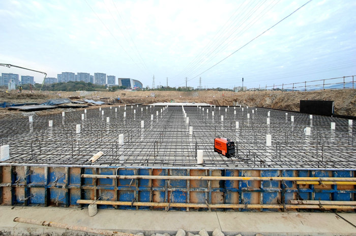 工人在綁扎泄洪閘底板鋼筋籠 劉利攝
