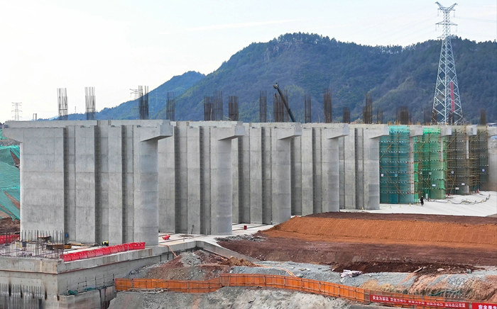 白虎灘樞紐6個泄洪閘墩完工 李學(xué)東攝