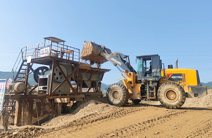 這個項目開工后,發(fā)現(xiàn)河道淤積著厚厚一層泥沙石,主管領(lǐng)導帶領(lǐng)工程技術(shù)人員經(jīng)過幾番考察,認為河道內(nèi)的“毛坯“材料經(jīng)過細加工完全可以用于導流墻、泄洪閘、電站、橋梁等項目施工。他們先在招賢工地做試點,加工后的幾種規(guī)格的石子、砂子經(jīng)試驗室檢測,符合質(zhì)量標準,鑒于此,迅速組織有關(guān)人員起草實施方案,報請衢州市、常山縣質(zhì)監(jiān)部門和業(yè)主、監(jiān)理單位審核,經(jīng)歷一番周折后順利通過各方檢測,同意采用二次加工后的地材投入施工生產(chǎn)。