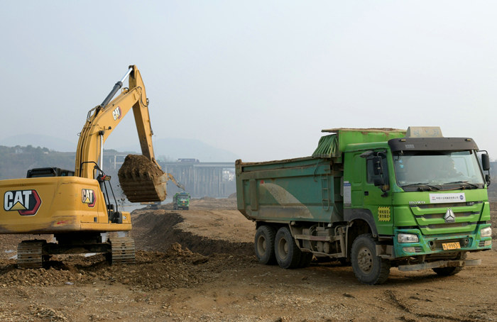 本站消息 2月17日,從常山江航電招賢樞紐獲悉,挖掘機、渣土車聯(lián)合作戰(zhàn),正在挖運下游江北岸6米多厚的60多萬立方泥砂石,將構(gòu)筑一座700多米的大堤,抵御主汛期巨大洪峰沖擊。