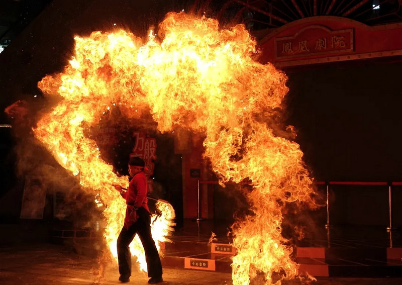 活動(dòng)現(xiàn)場(chǎng)包含了新春特別版節(jié)目演繹和非遺火舞表演?;鸢?、火棍、火流星、鐵飛花等精彩演出在夜空中劃出優(yōu)美的弧線,舞者們矯健的身姿與火焰完美融合,給游客帶來了視覺與文化的雙重震撼,現(xiàn)場(chǎng)游客紛紛拿出手機(jī)拍照打卡,記錄了這難忘的瞬間。