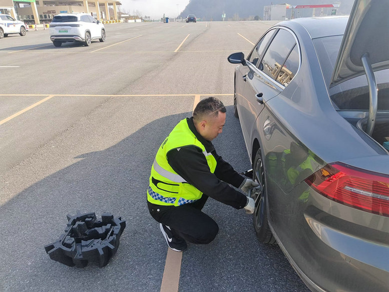 3月3日早,王先生駕駛小轎車從廣平高速唐家河收費站駛入高速,途中發(fā)現左后輪胎急速漏氣、車身出現搖晃、嚴重影響行駛安全;就近駛入青龍湖服務區(qū),停車與維修店聯系維修事宜,因路途過遠、價格過高發(fā)生爭執(zhí)。正在王先生急氣交加之際,巡查至此的何晶上前詢問,在了解情況、檢查故障后,一邊安撫王先生情緒,一邊取出清障車隨車工具,花費20多分鐘時間卸下漏氣輪胎、換上備用輪胎。