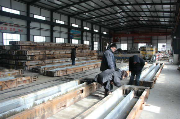 質(zhì)檢人員認(rèn)真檢測(cè)張拉桿中心距