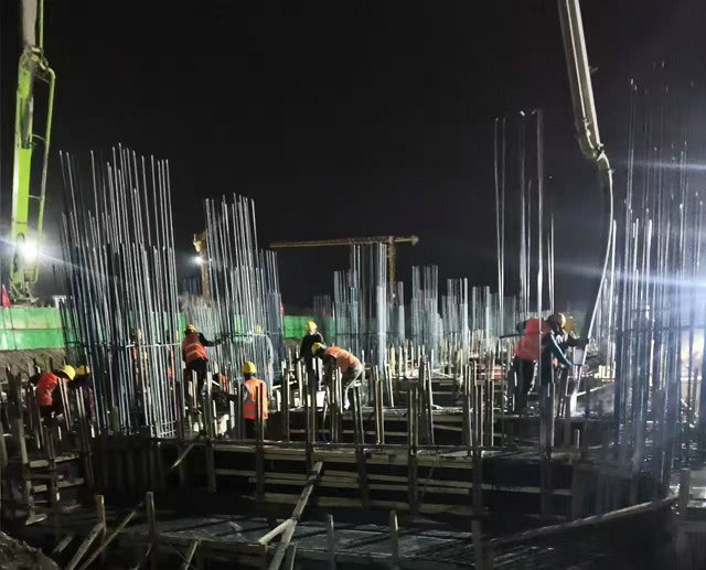 3月16日晚,夜幕降臨,華燈初上,A-5號(hào)樓卻被照得如同白晝,只見混凝土澆筑區(qū)域,數(shù)輛混凝土攪拌車魚貫駛?cè)?,泵車伸展著長(zhǎng)長(zhǎng)的“臂膀”,源源不斷地將混凝土輸送至指定部位。工人們分工明確,讓每一處角落都能被混凝土完美覆蓋。模板工正在加固模板、調(diào)整鋼筋,確保整個(gè)結(jié)構(gòu)穩(wěn)固堅(jiān)實(shí)。為了推進(jìn)項(xiàng)目建設(shè),項(xiàng)目部開始了夜間施工。