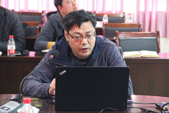 圖三、中國鐵建大橋局四公司總工程師蓋青山(中)主持會議