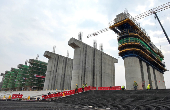 閣底樞紐泄洪閘8個閘墩 黃偉攝
