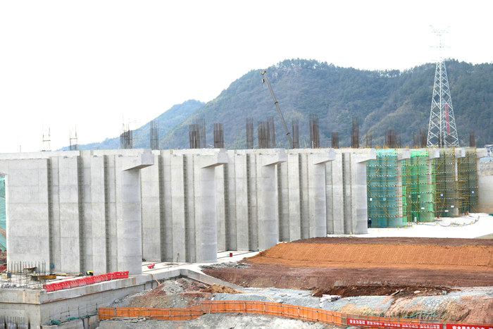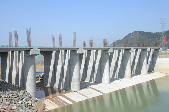 架完梁的頂部將建一座座安裝啟閉機的小房子 劉利攝