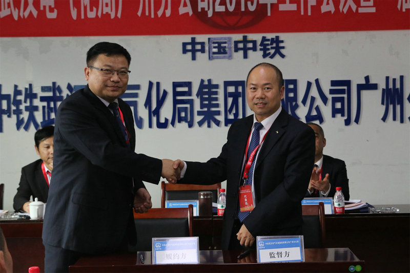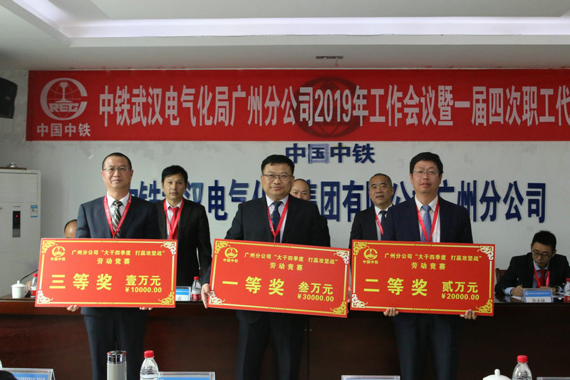16日下午,中鐵武漢電氣化局廣州分公司2019年工作會暨一屆四次職工代表大會在中國中鐵司歌《開路先鋒》歌聲中勝利閉幕。