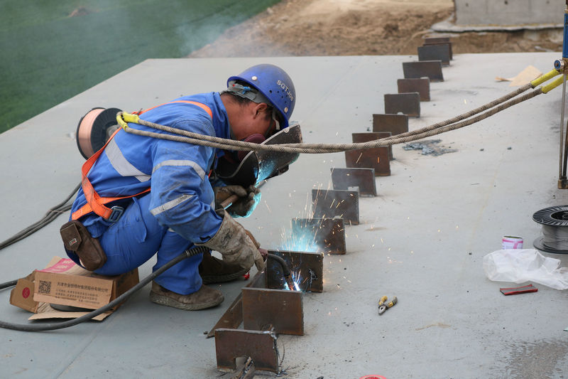 廣西北新建筑公司(長(zhǎng)沙分公司)安徽宿固6標(biāo)項(xiàng)目現(xiàn)場(chǎng)工人正在進(jìn)行焊接作業(yè) 李丹攝