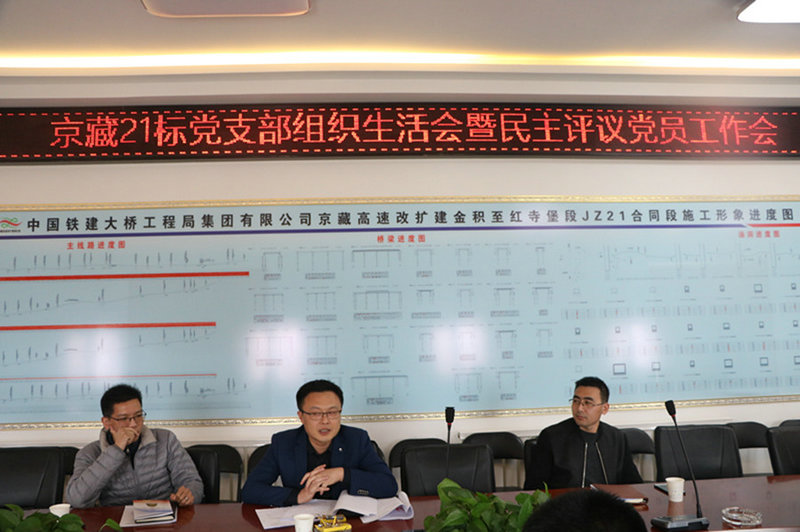 3月19日下午,中鐵建大橋工程局集團西北公司京藏21標(biāo)召開2018年度黨支部組織生活會。項目黨建工作聯(lián)系點領(lǐng)導(dǎo)、公司副總經(jīng)理姜喜東,黨群工作部部長史少龍,紀(jì)檢監(jiān)察部部長、團委書記高健華到會督導(dǎo),會議由項目黨支部副書記劉德舉主持召開。