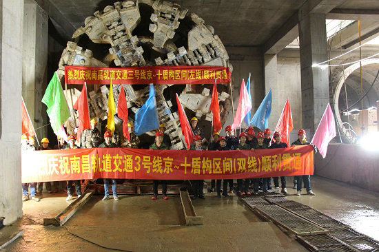 3月22日,在中鐵建大橋局一公司施工的南昌地鐵3號線的京家山站現(xiàn)場,隨著兩層樓高的盾構(gòu)機刀盤緩緩擊破洞門,“中鐵490#”盾構(gòu)機破土而出,南昌地鐵3號線京家山站~十字街站區(qū)間左線順利實現(xiàn)貫通,此區(qū)間右線已于今年1月份貫通,至此,該標段三個盾構(gòu)區(qū)間中一個實現(xiàn)雙線貫通。