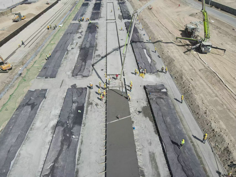 2024年10月項(xiàng)目正式開工,項(xiàng)目團(tuán)隊(duì)跑步進(jìn)場,精準(zhǔn)施策,按下施工“快進(jìn)鍵”,將施工計(jì)劃細(xì)化到日、責(zé)任落實(shí)到人。管理人員全程動態(tài)監(jiān)控,通過實(shí)時數(shù)據(jù)反饋及時調(diào)整資源配置,實(shí)現(xiàn)多工序交叉作業(yè)無縫銜接;關(guān)鍵節(jié)點(diǎn)實(shí)行技術(shù)人員24小時輪班值守,確保施工“零延誤”。同時,聯(lián)合總包、監(jiān)理單位建立周協(xié)調(diào)機(jī)制,高效破解施工堵點(diǎn),為工期提前注入強(qiáng)勁動能。為確保工程質(zhì),項(xiàng)目部構(gòu)建“全鏈條”管理體系,從原材料進(jìn)場檢驗(yàn)到成品驗(yàn)收,嚴(yán)格執(zhí)行標(biāo)準(zhǔn)化流程,現(xiàn)場管理人員全程旁站監(jiān)督,確保每道工序質(zhì)量達(dá)標(biāo)。為確保施工安全,項(xiàng)目部建立雙重預(yù)防機(jī)制,制定完善的安全制度與應(yīng)急預(yù)案,布設(shè)全覆蓋警示標(biāo)識,配備專職安全員巡查,定期開展安全培訓(xùn)與應(yīng)急演練,全方位保障施工安全。塔里木乙烯鐵路專用線無土化施工節(jié)點(diǎn)的提前完成,為后續(xù)工程建設(shè)奠定堅(jiān)實(shí)基礎(chǔ)。