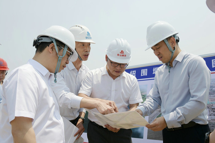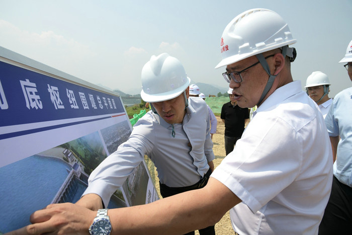 王永明仔細(xì)查看了閣底樞紐總體工程布置圖和形象進(jìn)度圖、施工中的電站現(xiàn)場(chǎng)、電站二期圍堰、架設(shè)完成的5孔橋梁和安裝完畢的4道泄洪閘門(mén),碧綠的常山江水和兩岸綠的泛光的喬灌木,表示滿意。他說(shuō):投資、監(jiān)理單位都付出了很大努力,同時(shí)也見(jiàn)識(shí)了中鐵十五局的施工能力。根據(jù)了解的情況,王永明提出4點(diǎn)要求:一是今年雨水多于往年,定陽(yáng)航運(yùn)投資集團(tuán)、監(jiān)理公司和中鐵十五局,要齊心合力防大汛,不能有絲毫麻痹,要確保汛期員工和財(cái)產(chǎn)安全。二是要建立晝夜巡查制度,領(lǐng)導(dǎo)帶班,特別是大雨、暴雨極端天氣和上游水庫(kù)放水,要保持高度警惕,哪個(gè)樞紐遇到險(xiǎn)情,要立即啟動(dòng)應(yīng)急預(yù)案,突擊隊(duì)和機(jī)械車(chē)輛快速到場(chǎng)搶險(xiǎn)。三是對(duì)管理、作業(yè)人員每周要進(jìn)行一次安全防范教育,對(duì)施工安全的認(rèn)識(shí)要到位,消除僥幸心理。四是安全防護(hù)措施要得力,中雨和大到暴雨天氣停止施工,人員和機(jī)械設(shè)備撤到安全地帶。