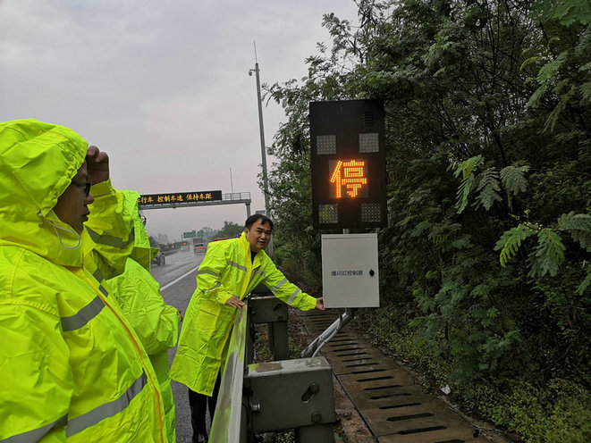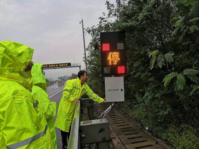 該監(jiān)測(cè)預(yù)警系統(tǒng)由照明裝置、具有語(yǔ)音播報(bào)功能的文字型爆閃警示裝置、微光攝像機(jī)及橋梁簡(jiǎn)易感知報(bào)警系統(tǒng)組成。當(dāng)某路段或橋梁突發(fā)異常時(shí),微光攝像機(jī)會(huì)及時(shí)捕捉,并將結(jié)果傳導(dǎo)至系統(tǒng)終端所屬的監(jiān)控中心,監(jiān)控中心通過(guò)高位監(jiān)控視頻確認(rèn)災(zāi)情,立即向高德、百度等導(dǎo)航系統(tǒng)推送災(zāi)害信息更新路況,同步聯(lián)動(dòng)監(jiān)測(cè)預(yù)警系統(tǒng)激活沿途電子顯示屏、爆閃燈和高音喇叭等“聲、光、電”警示裝置,提醒過(guò)往車輛繞道避險(xiǎn)。該監(jiān)測(cè)預(yù)警系統(tǒng)的安裝,確保了渝長(zhǎng)復(fù)線高速在突發(fā)險(xiǎn)情時(shí)能第一時(shí)間發(fā)現(xiàn)并及時(shí)向往來(lái)司乘進(jìn)行提醒、告知,最大限度的降低了險(xiǎn)情帶來(lái)的危害,同時(shí)給道路養(yǎng)護(hù)救援單位爭(zhēng)取了時(shí)間。