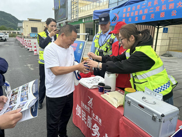 法送您手中——提前準備各類宣傳折頁,向過往旅客發(fā)放;在服務區(qū)便民服務點設置咨詢臺,向過往旅客提供咨詢、講解服務。“一上午發(fā)放了200余份宣傳折頁”,廣平高速青龍湖服務區(qū)站管人員樊雨爾說:“看到旅客在認真觀看,遇到不清楚的還向高速公安、高速執(zhí)法人員咨詢,感到開展這項活動很有意義”。