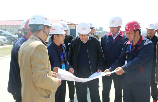 圖為檢查組在施工現(xiàn)場(chǎng)檢查指導(dǎo)