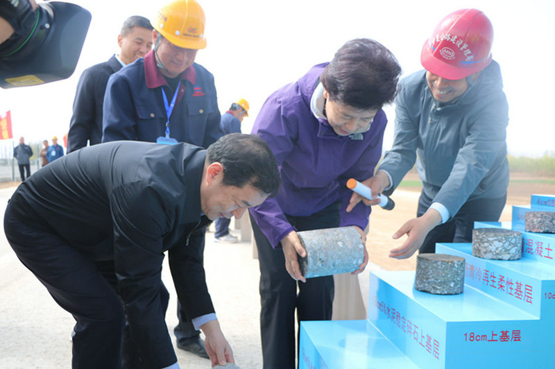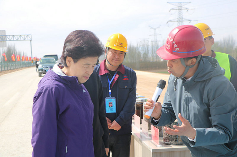 在施工現(xiàn)場(chǎng),咸輝主席、張超超常務(wù)副主席聽取了京藏高速寧夏境內(nèi)全線建設(shè)情況以及中國(guó)鐵建大橋局西北公司承建的京藏高速JZ21標(biāo)工程建設(shè)情況,仔細(xì)了解設(shè)計(jì)、施工、交通分流等情況,饒有興趣地了解了路面原材料樣品、路面7層結(jié)構(gòu)層芯樣,并查看了路基路床的拼接施工等。