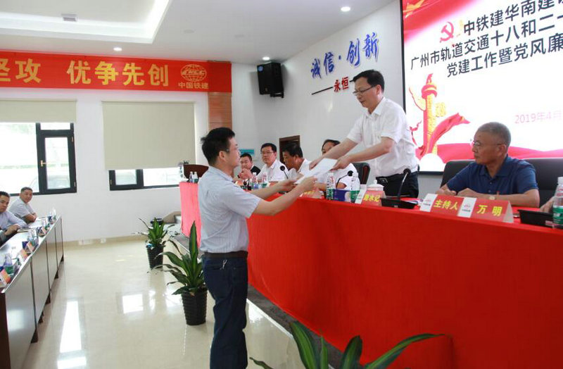 (本站廣州消息,通訊員段緒江),在廣州地鐵十八和二十二號線工程建設(shè)迎來全線施工大干的關(guān)鍵之年,中鐵建華南建設(shè)有限公司廣州市軌道交通十八和二十二號線工程總承包部于4月10日召開了黨建工作暨黨風(fēng)廉政建設(shè)推進(jìn)會。