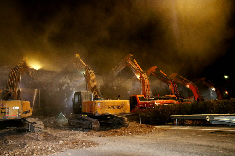 為保障拆除施工順利安全進行,項目部多項措施并舉:一是多次與當(dāng)?shù)卣案咚俳痪瘻贤?,落實交通改線工作;二是安全員全過程監(jiān)督,逐點排查安全隱患;三是安排專人負責(zé)遠端分流工作,杜絕社會車輛誤入施工管制區(qū)域;四是合理組織施工機械,嚴(yán)控拆除程序,確保拆除過程安全。