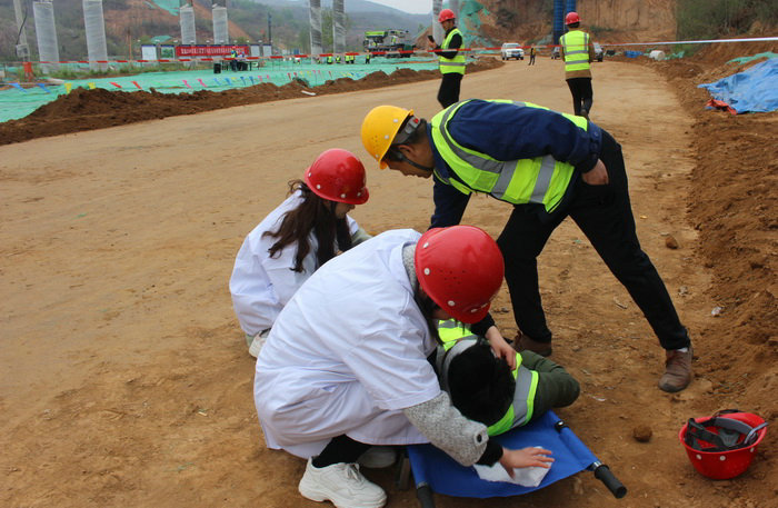 演練中醫(yī)護(hù)人員救援傷員 隨后,監(jiān)理單位負(fù)責(zé)人就本次演練內(nèi)容及過(guò)程給予了點(diǎn)評(píng),“質(zhì)量月”活動(dòng)啟動(dòng)已有半月,目前施工節(jié)奏緊張,現(xiàn)場(chǎng)加班加點(diǎn)往前沖,安全工作絕對(duì)不能忽視,進(jìn)入施工現(xiàn)場(chǎng),就要對(duì)自己負(fù)責(zé)。要像在演練時(shí)一樣提高警惕、加強(qiáng)安全管理,將事故風(fēng)險(xiǎn)降到最低。