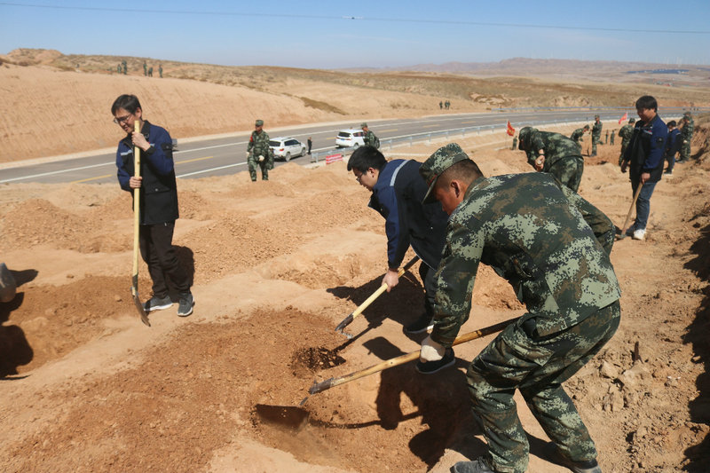 “眾人拾柴火焰高,眾人植樹樹成林。”4月11日,在寧夏紅寺堡區(qū)滾新公路沿線,中國鐵建大橋局京藏改擴建路面3標項目響應(yīng)習主席號召,攜手中國武警寧夏總隊,與當?shù)厝罕娨黄痖_展了“軍民共建”植樹造林活動。