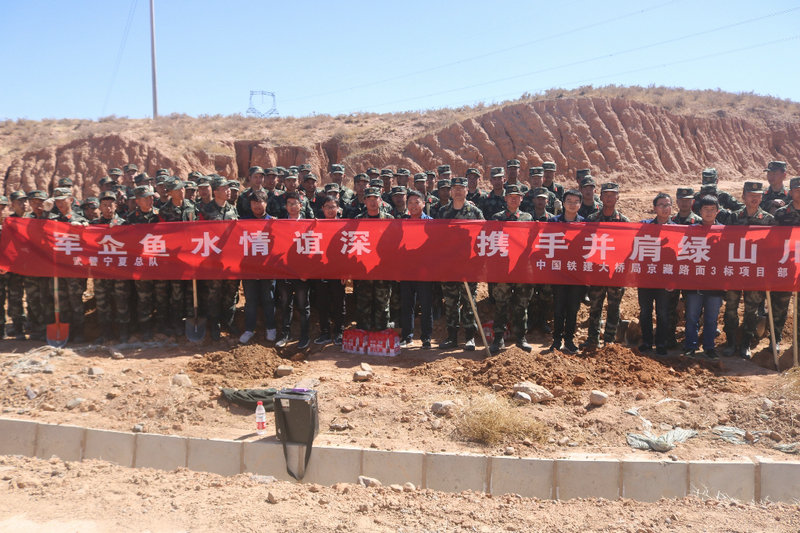 在植樹間隙,項目黨支部書記王貴杰和陳參謀向大家介紹了本單位參與寧夏生態(tài)建設(shè)的情況。中國鐵建大橋局前身是鐵道兵第三師,傳承了鐵道兵的優(yōu)良作風,在軍愛民,在民擁軍,進入寧夏30年來,參建了7條鐵路干線97公里,13條高速共計580多公里,瀝青路面1000多公里。始終堅持在所建的公路、鐵路、橋梁等項目附近大力推進“綠地”建設(shè),護得了一方綠水青山。寧夏武警和駐寧部隊20年來的大規(guī)模植樹造林活動,至今已累計植樹162萬余株,營造綠色長廊200多公里,為地方生態(tài)建設(shè)也作出了巨大貢獻。